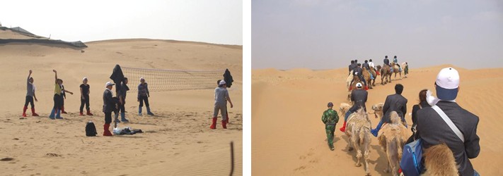大家懷著激情昂揚(yáng)的心情下了車(chē),進(jìn)行了沙漠排球、滑沙、騎駱駝等各種項(xiàng)目