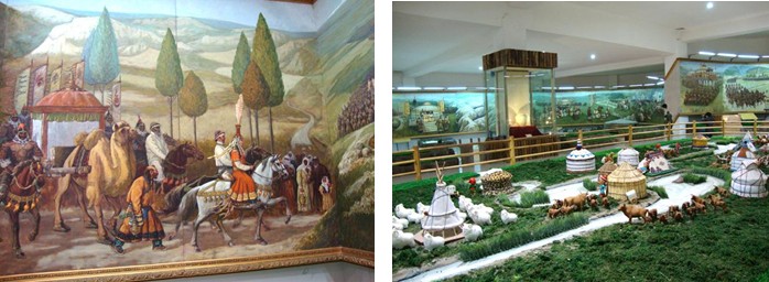 隨后我們進(jìn)入了成陵中最壯觀的蒙古歷史文化博物館,參觀長(zhǎng)達(dá)206米的《蒙古歷史長(zhǎng)卷》油畫(huà)是世界上最長(zhǎng)的油畫(huà)和各種蒙古用品模型。